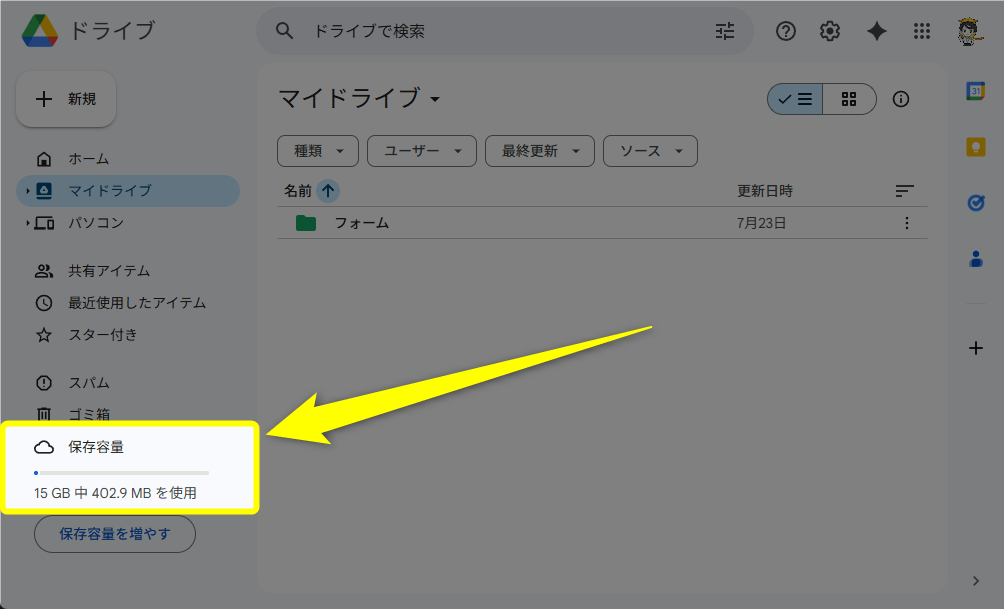 Google ドライブの保存容量を確保してくださいね。