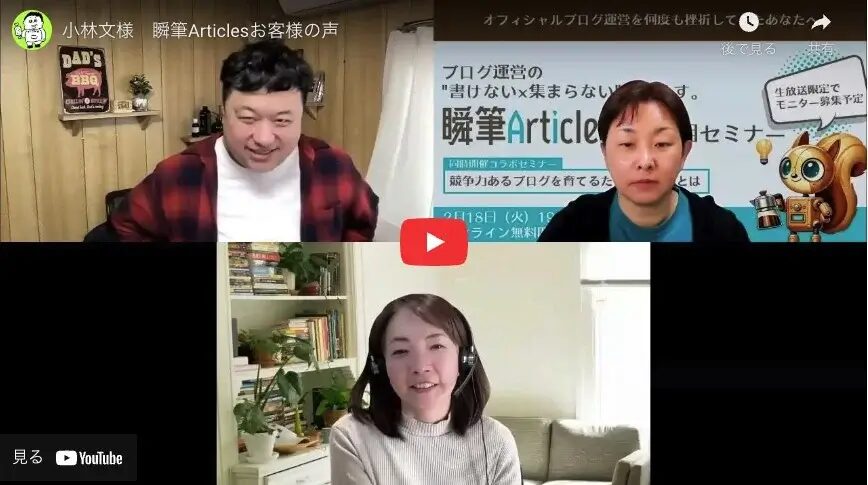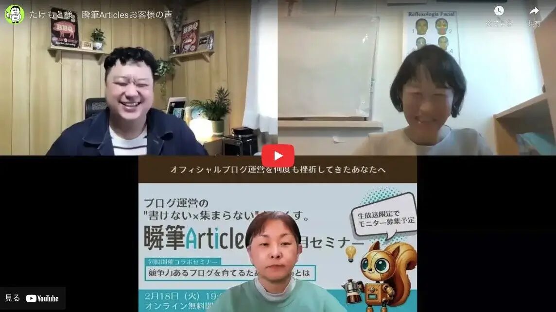 - 2025年2月:『ブログの ❝書けない × 集まらない❞ をなくす運営術~ブログ初心者が陥りがちな罠と資産ブログ構築のキホン~』セミナー登壇 (長嶺圭一郎様とのコラボセミナー第2部)