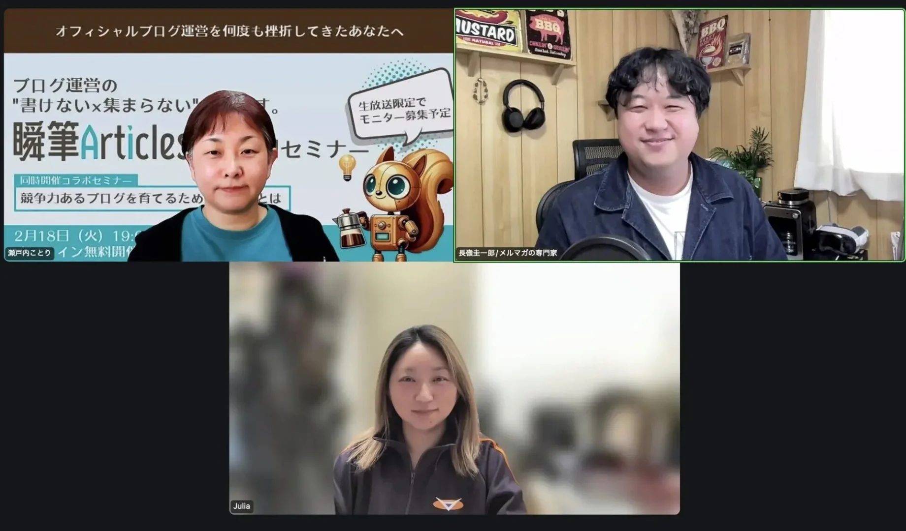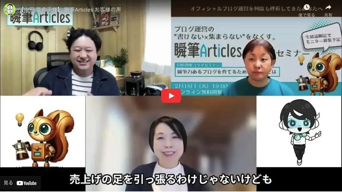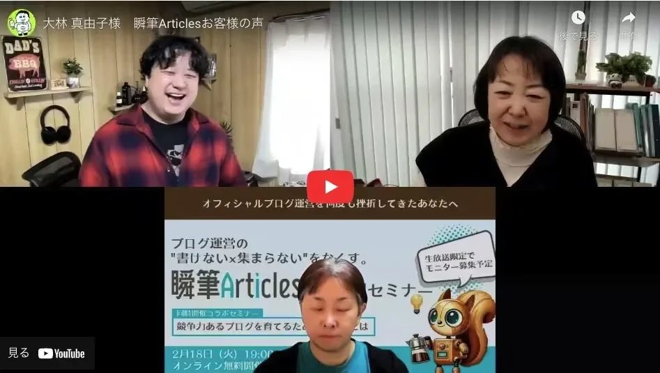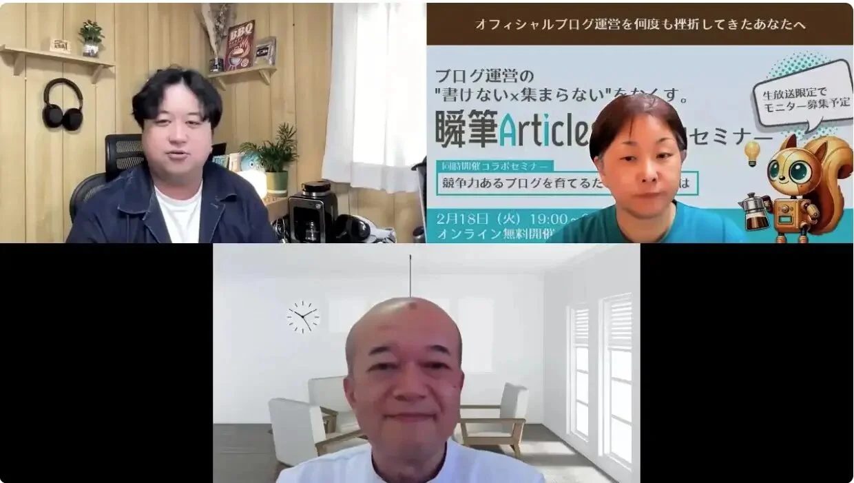 - 2025年2月:『ブログの ❝書けない × 集まらない❞ をなくす運営術~ブログ初心者が陥りがちな罠と資産ブログ構築のキホン~』セミナー登壇 (長嶺圭一郎様とのコラボセミナー第2部)